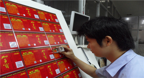 質檢員正在用罐二重卷封投影儀檢測卷封質量